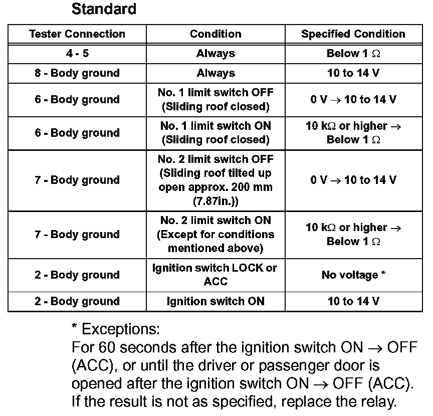 ON-VEHICLE INSPECTION1. INSPECT SLIDING ROOF FUNCTION