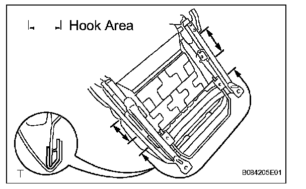 b. Install the seat cushion cover (with pad) to the seat adjuster by using hog ring pliers to attach new hog rings and hooks.