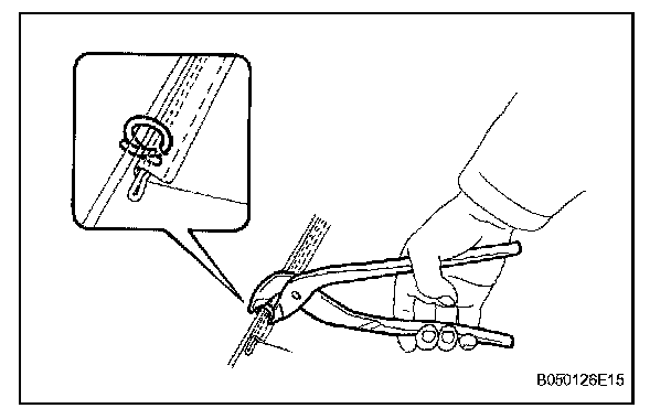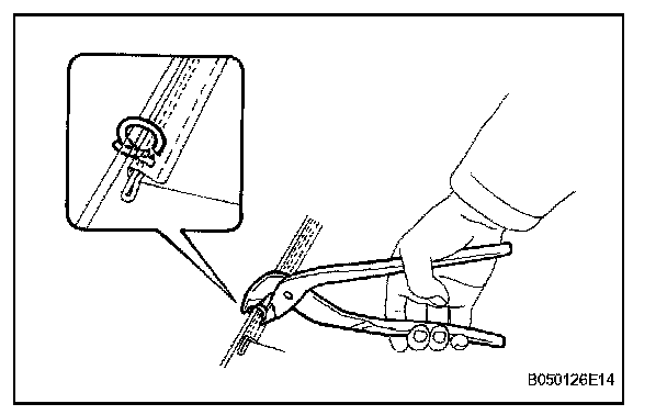 a. Using hog ring pliers, install the seat cushion cover to the seat cushion pad with new hog rings.