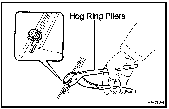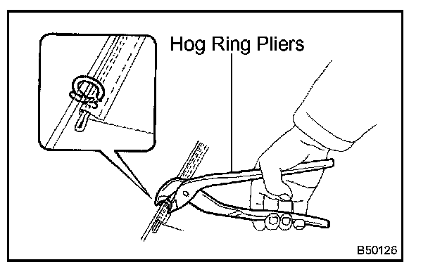 a. Using hog ring pliers, install the seat cushion cover to the seat cushion pad with new hog rings.