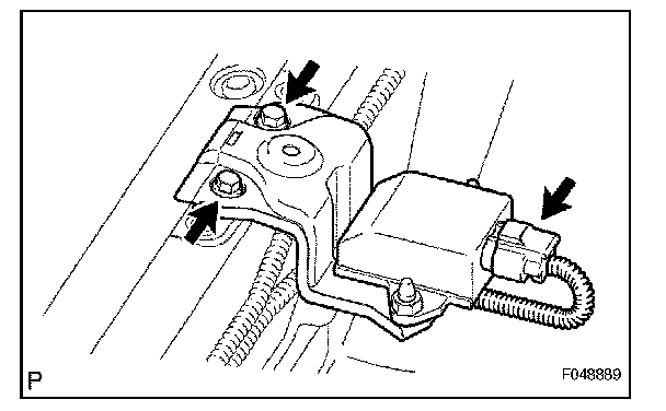 a. Disconnect the deceleration sensor connector from the deceleration sensor, then remove the 2 bolts and deceleration sensor with the anchor side deceleration sensor bracket.