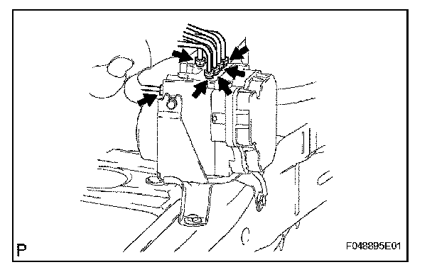 c. Using SST, connect each brake tube to correct positions of the actuator with bracket, as shown in the illustration.