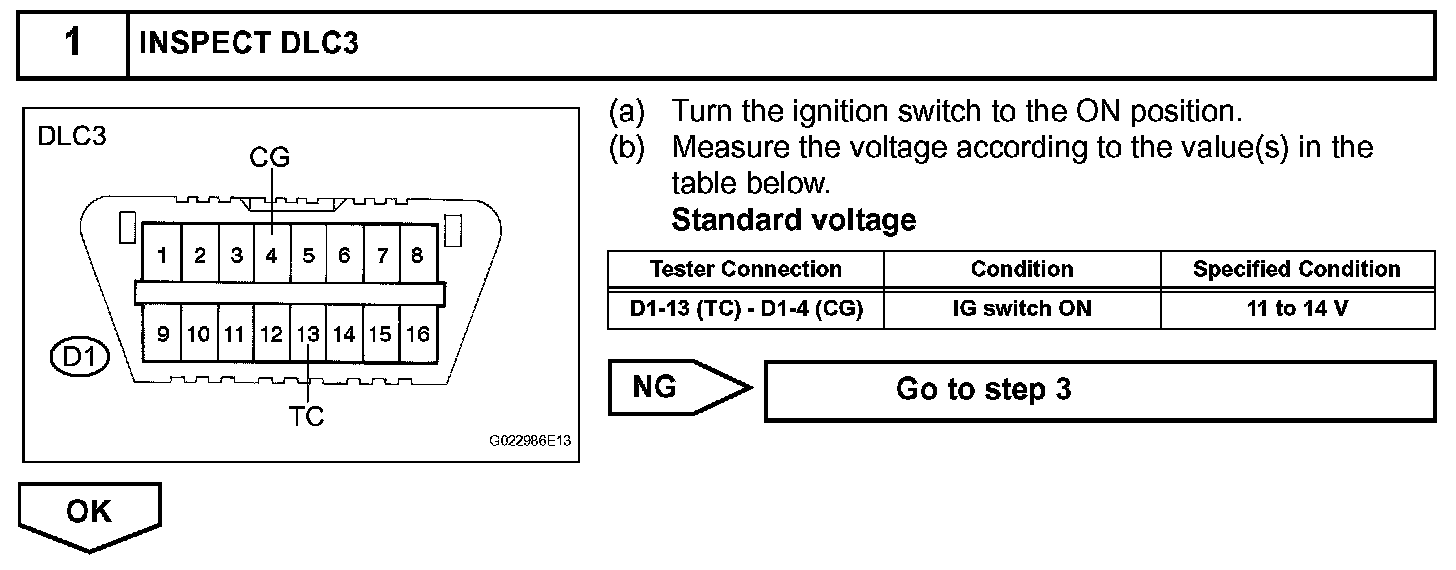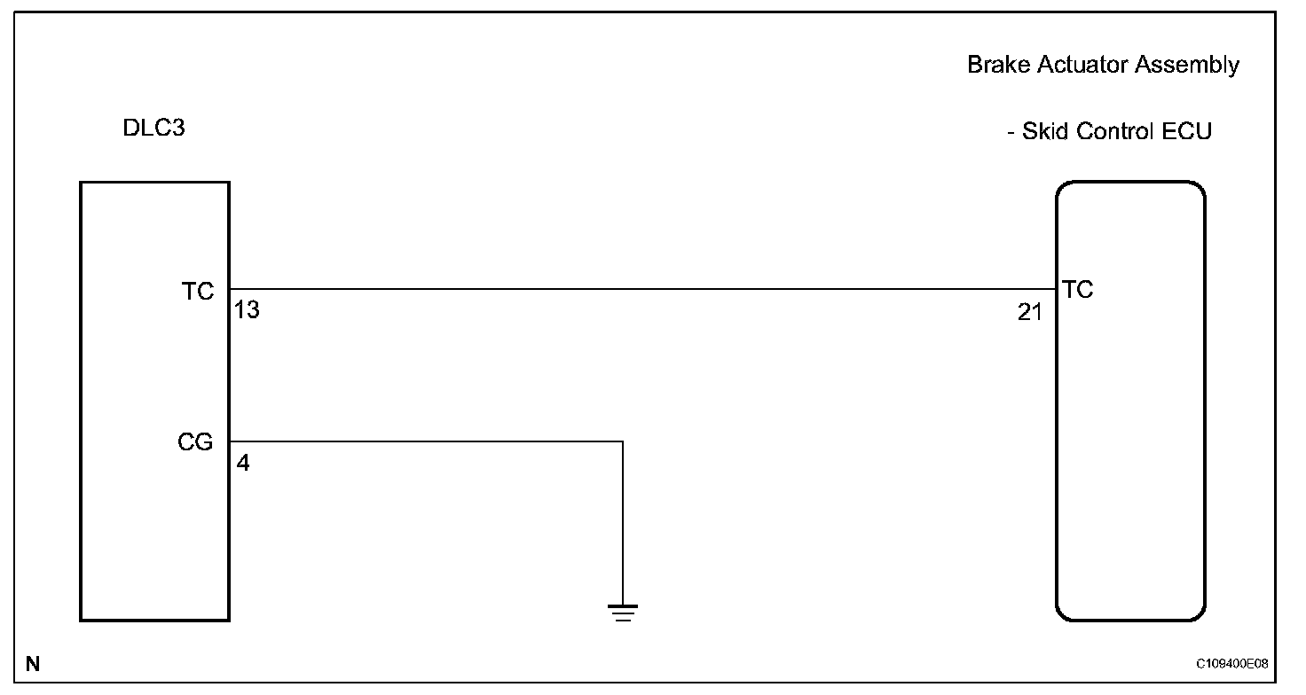 Connecting terminals TC and CG of the DLC3 causes the ECU to display the DTC by flashing the ABS warning light.