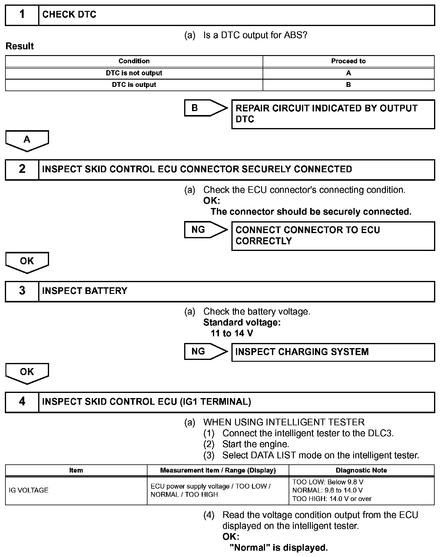 HINT: The intelligent tester may not be usable when there is a malfunction in the skid control ECU.