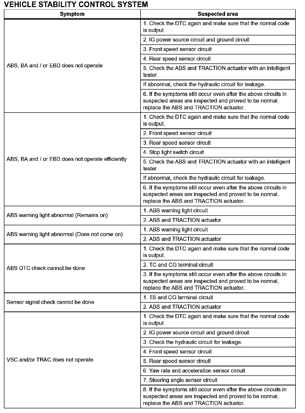 Problem Symptoms Table-Vehicle Stability Control System (Part 2):