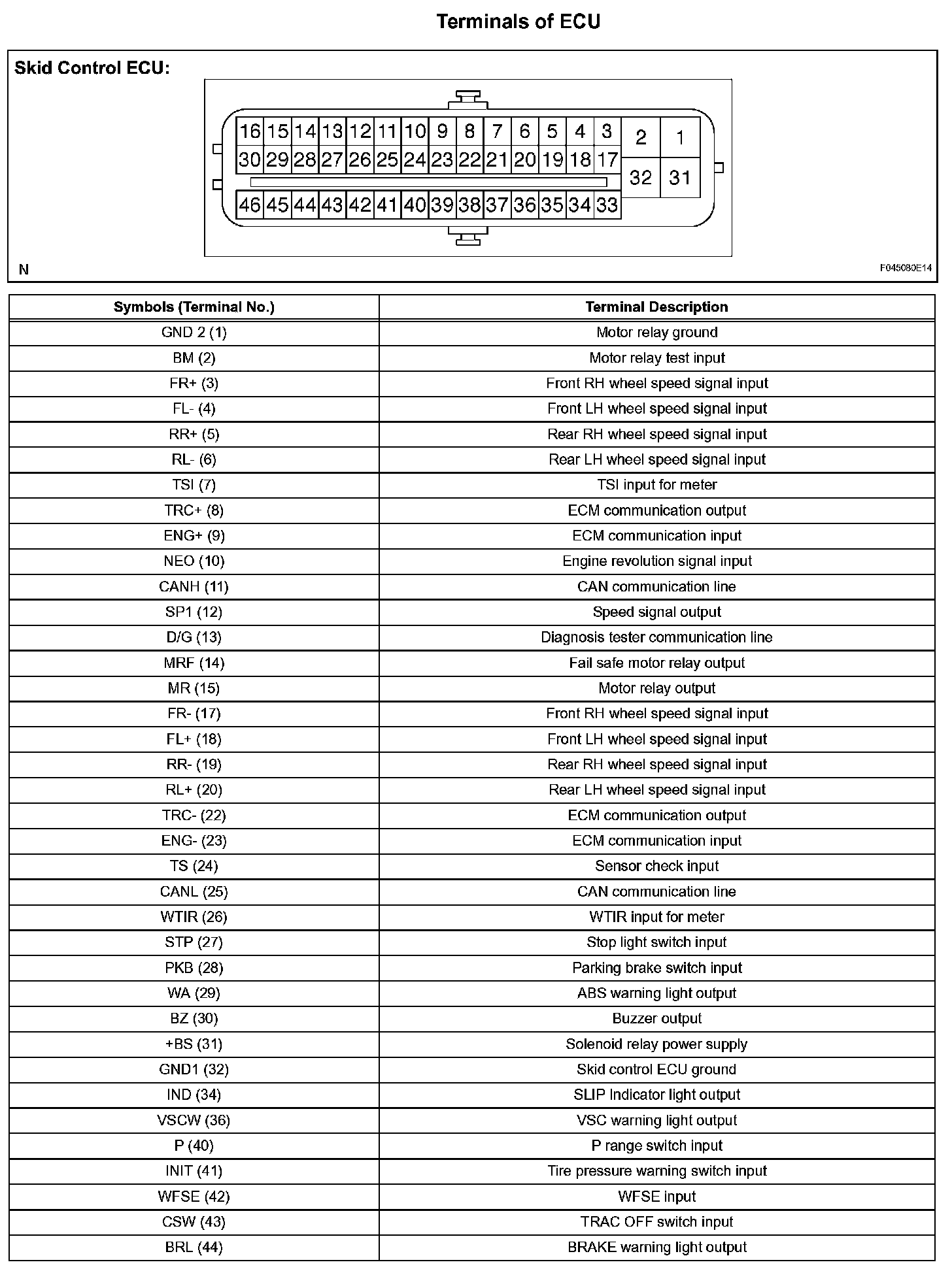 Terminals Of Control Module/Pinouts: