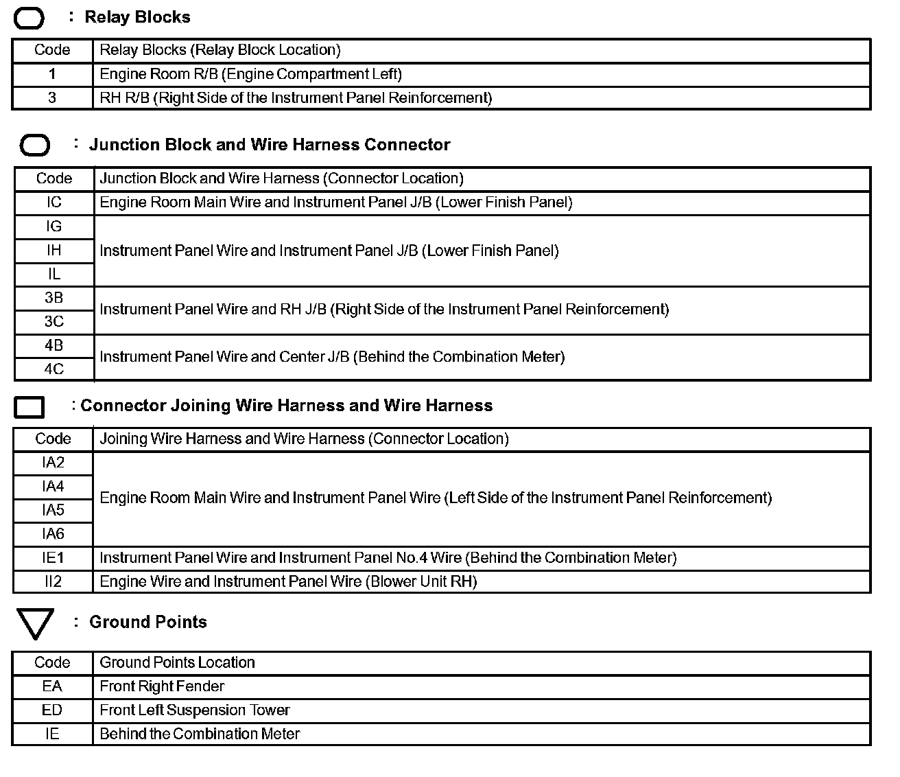 Locations: The locations of components, connectors, ground points, and splices referred to within these diagrams can be found at Vehicle Locations. Locations