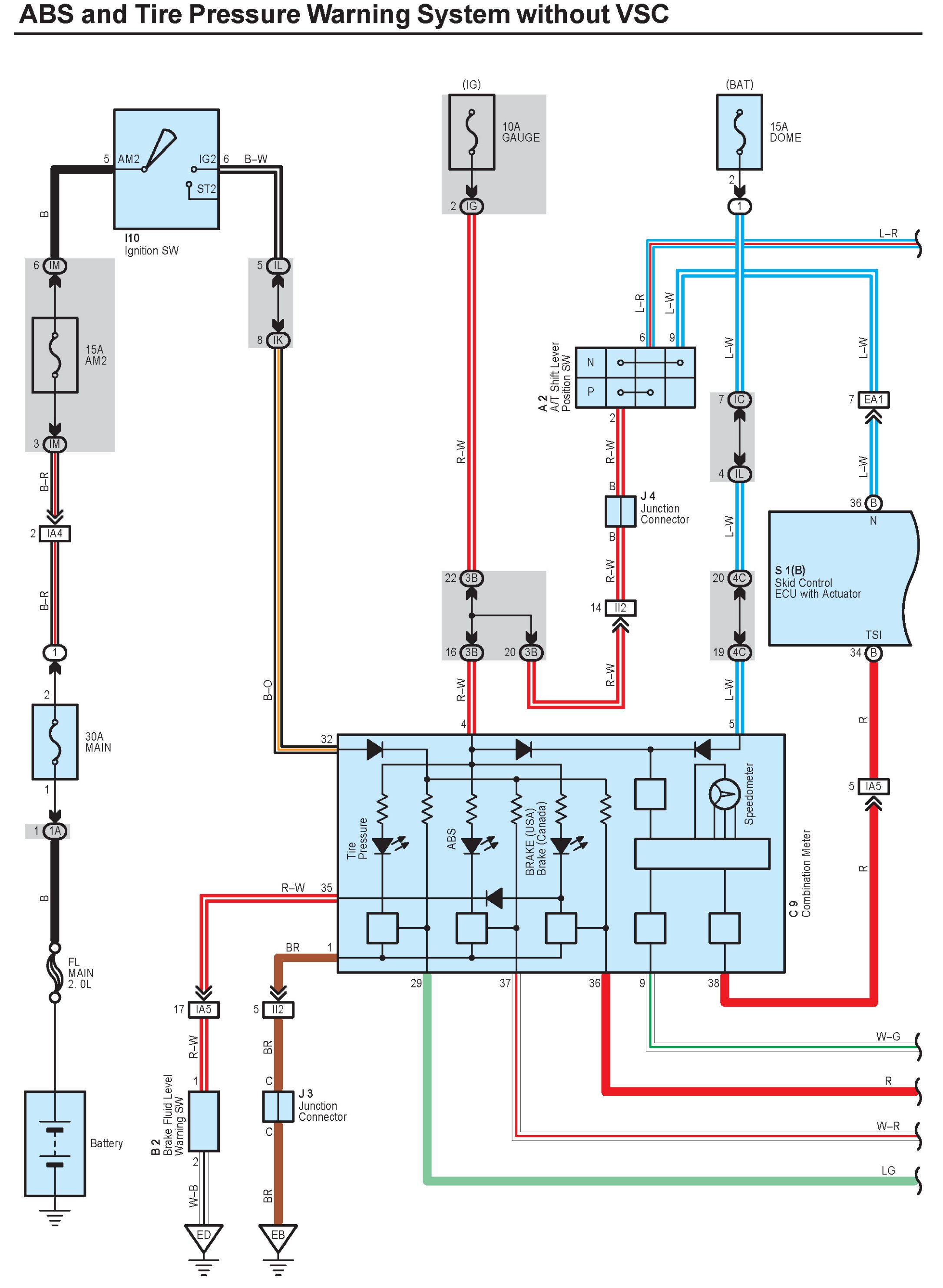 ABS and Tire Pressure Warning System Without VSC