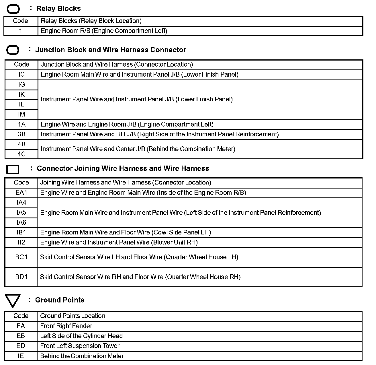 Locations: The locations of components, connectors, ground points, and splices referred to within these diagrams can be found at Vehicle Locations. Locations
