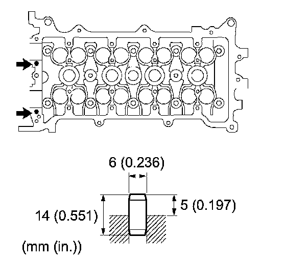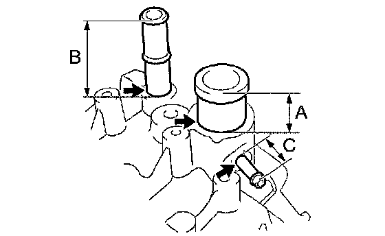 (c) Using a press, push in a new union until the standard marks come to the level of the cylinder head surface.