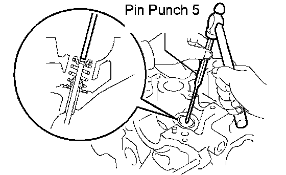 (d) Using a pin punch 5, lightly tap the valve stem tip to ensure a proper fit.