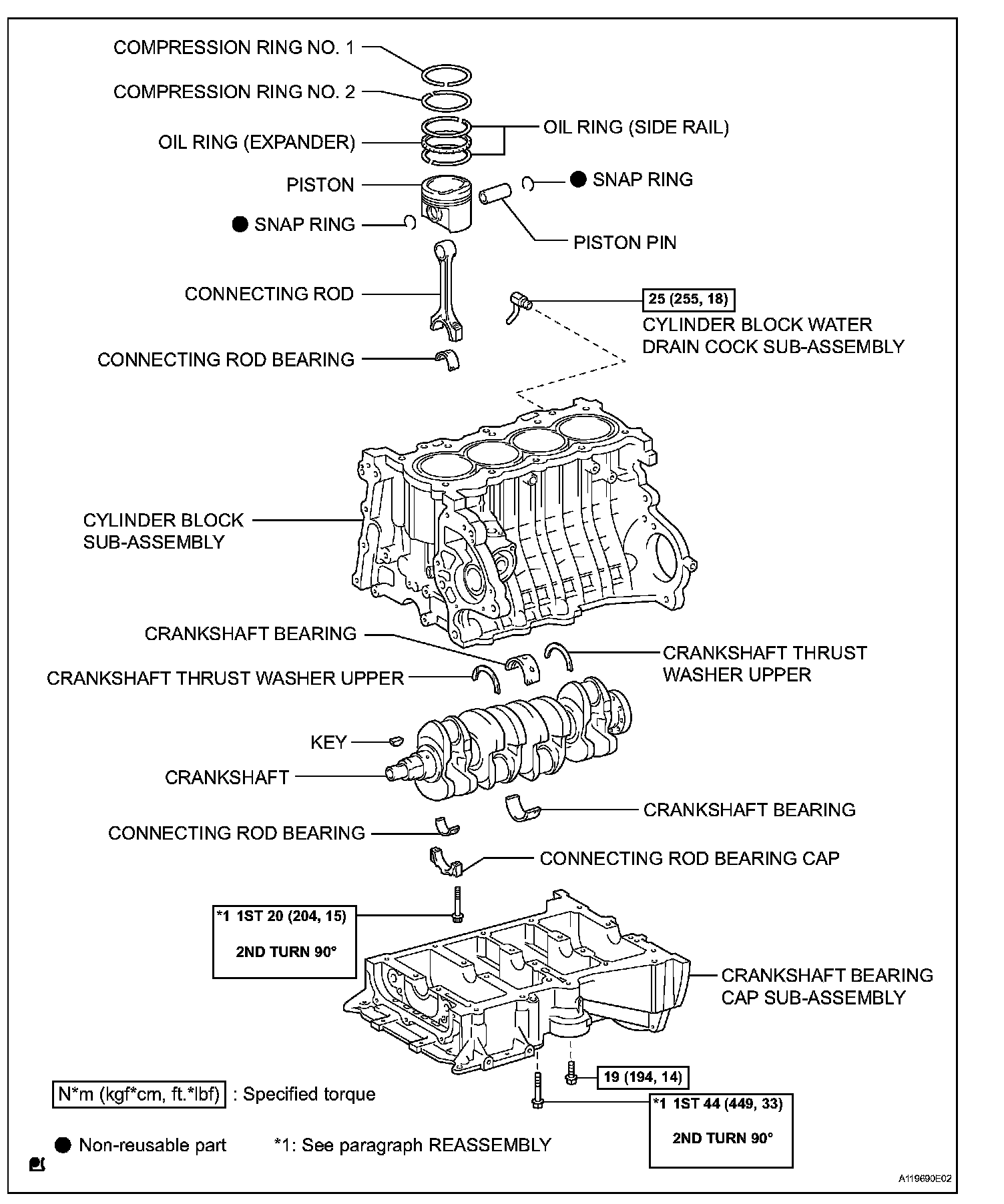 (a) Using several steps, uniformly loosen and remove the 19 bearing cap bolts in the sequence shown in the illustration.