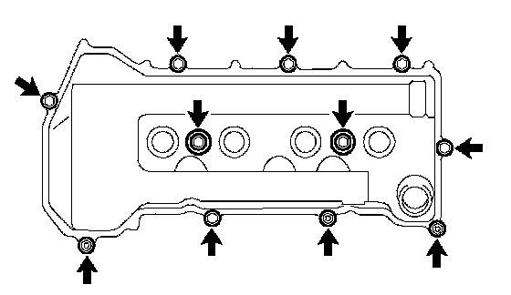 (a) Remove the 9 bolts, 2 seal washers and 2 nuts, then remove the cylinder head cover.