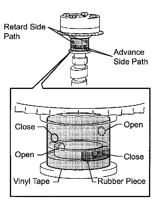 (5) When the camshaft timing gear comes to the most advanced position, release the air pressure of the timing retard side path, then release that of the timing advance side path.