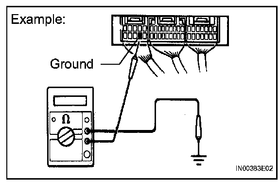 1. Measure the resistance between the ECU ground terminal and body ground.