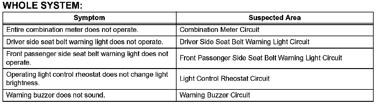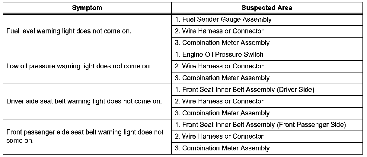 Problem Symptoms Table-Warning Lights (Part 2):