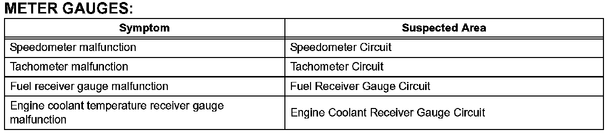 Problem Symptoms Table-Meter Gauges: