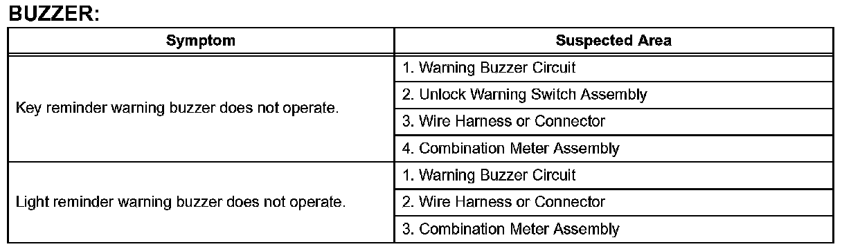 Problem Symptoms Table-Buzzer: