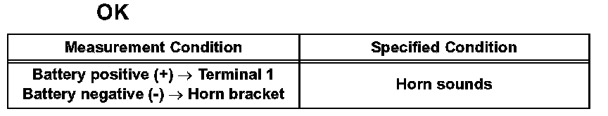 If the result is not as specified, replace the horn assembly.