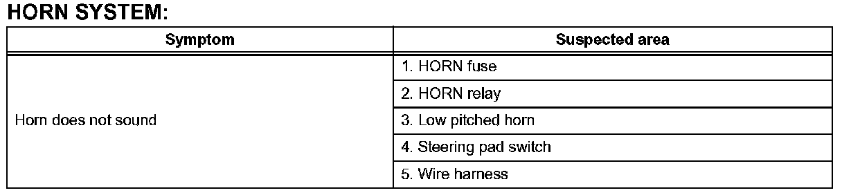 PROBLEM SYMPTOMS TABLEProblem Symptoms Table-Horn System: