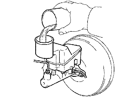 ^ Make sure that the brake fluid in the master cylinder reservoir tank does not become empty.