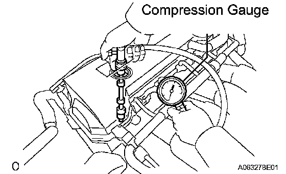 (1) Insert a compression gauge into the spark plug hole (Procedure "A").
