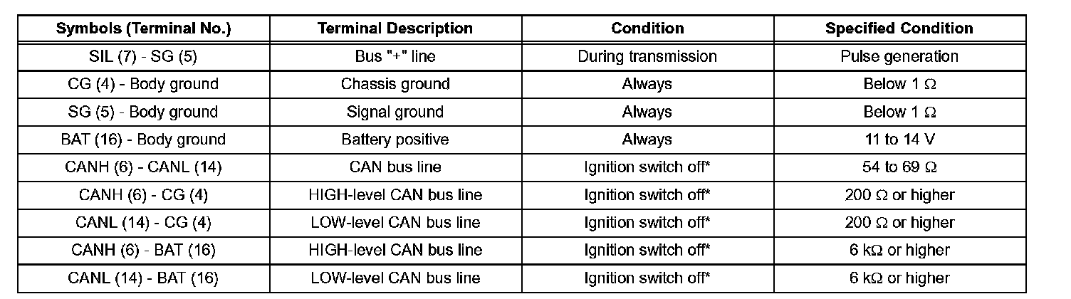NOTICE: *: Before measuring the resistance, leave the vehicle as is for at least 1 minute and do not operate the ignition switch, any other switches or the doors.