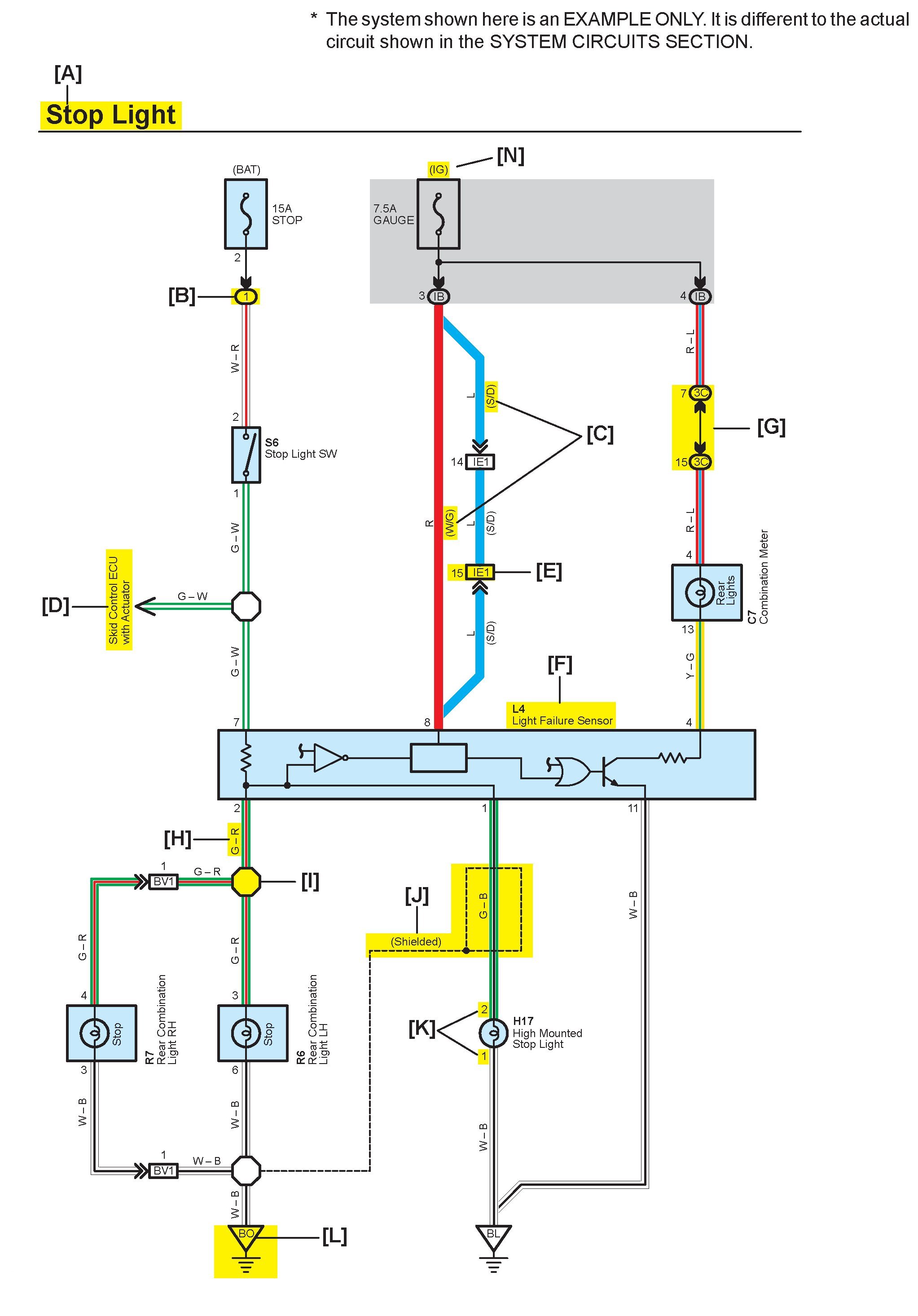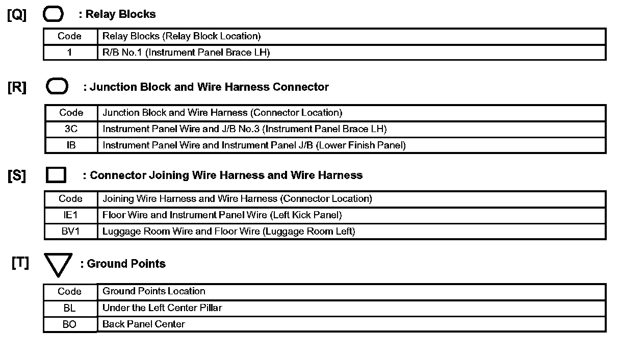 [L] : Indicates a ground point. The first letter of the code for each ground point(s) indicates the component s location, e.g, E for the Engine Compartment, I for the Instrument Panel and Surrounding area, and B for the Body and Surrounding area.