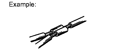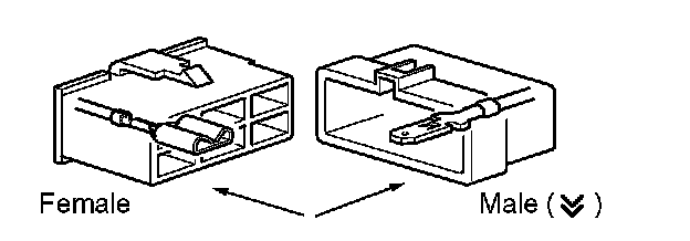 [E] : Indicates the wiring harness and wiring harness connector. The wiring harness with male terminal is shown with arrows ( ).