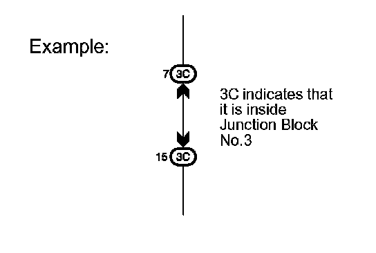 Example: Connector "3C" connects the Instrument Panel Wire and J/B No.3. It is installed on the instrument panel left side.