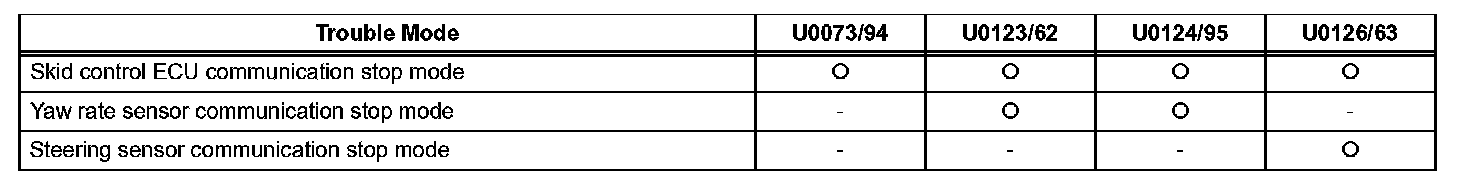 - U0073/94, U0123/62, U0124/95 and U0126/63 are the DTCs in the CAN communication system.