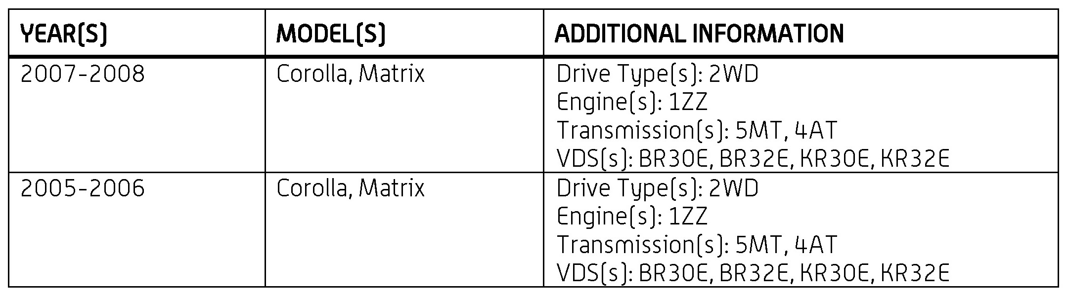 - This TSB applies to 2005 - 2006 MY Corolla and Matrix vehicles that are currently equipped with a 2007 MY ECM.