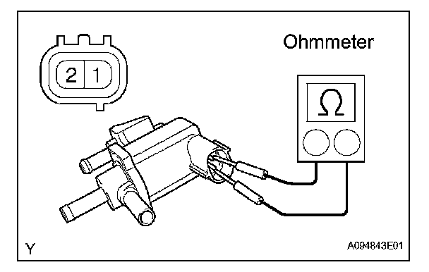 If the resistance is not as specified, replace the vacuum switching valve No. 1.