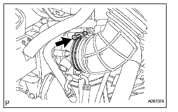 g. Loosen the hose clamp bolt and air cleaner hose No. 1.