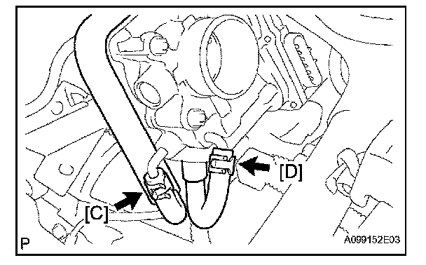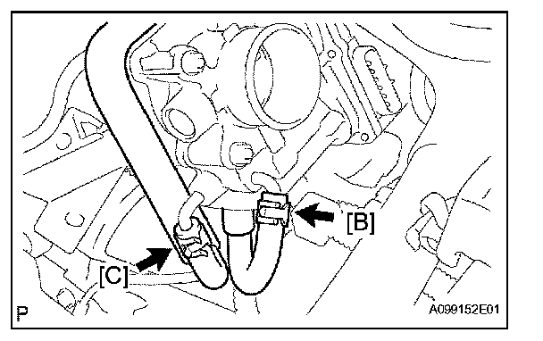 c. Disconnect the water by-pass hose No. 2 [C] from the throttle body.