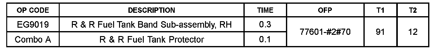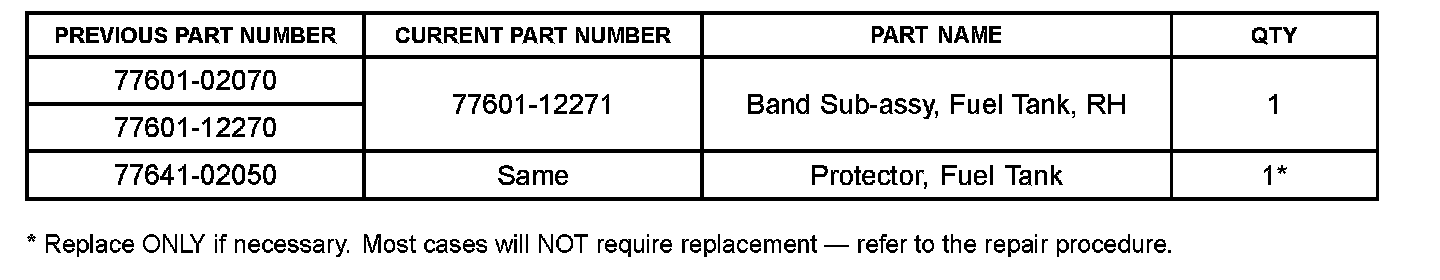 2. Inspect the fuel tank protector to fuel tank band mounting location. If it is loose/damaged proceed to step 3. If the mounting location is OK this TSB does NOT apply.