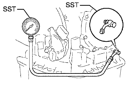 (2) Remove the test plug on the left side of the transaxle case and connect SST.