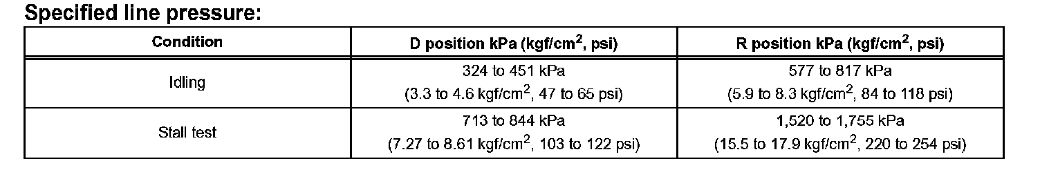 ^ Perform the test at the normal operating ATF (Automatic Transmission Fluid) temperature: 50 to 80°C (122 to 176°F).