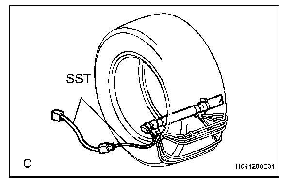 NOTE: To avoid damaging the SST connector and wire harness, do not lock the secondary lock of the twin lock. Also, secure some slack for the SST wire harness inside the tire.