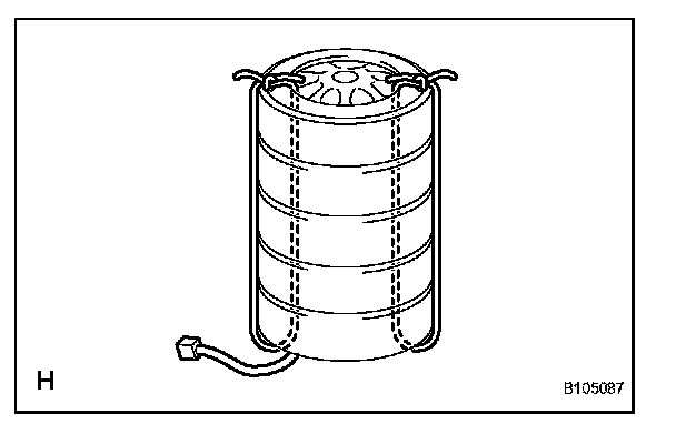 d. Using a service-purpose wire harness for the vehicle, tie down the curtain shield airbag assembly to the tire.