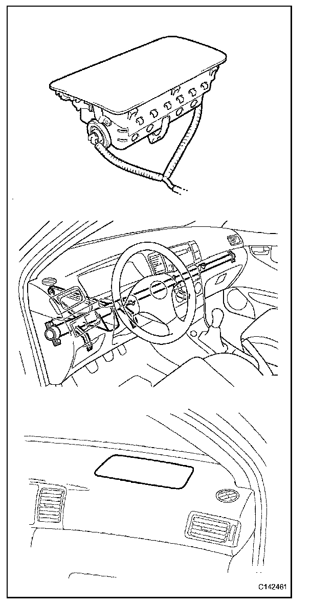 - Cuts, minute cracks or marked discoloration on the front passenger airbag assembly.