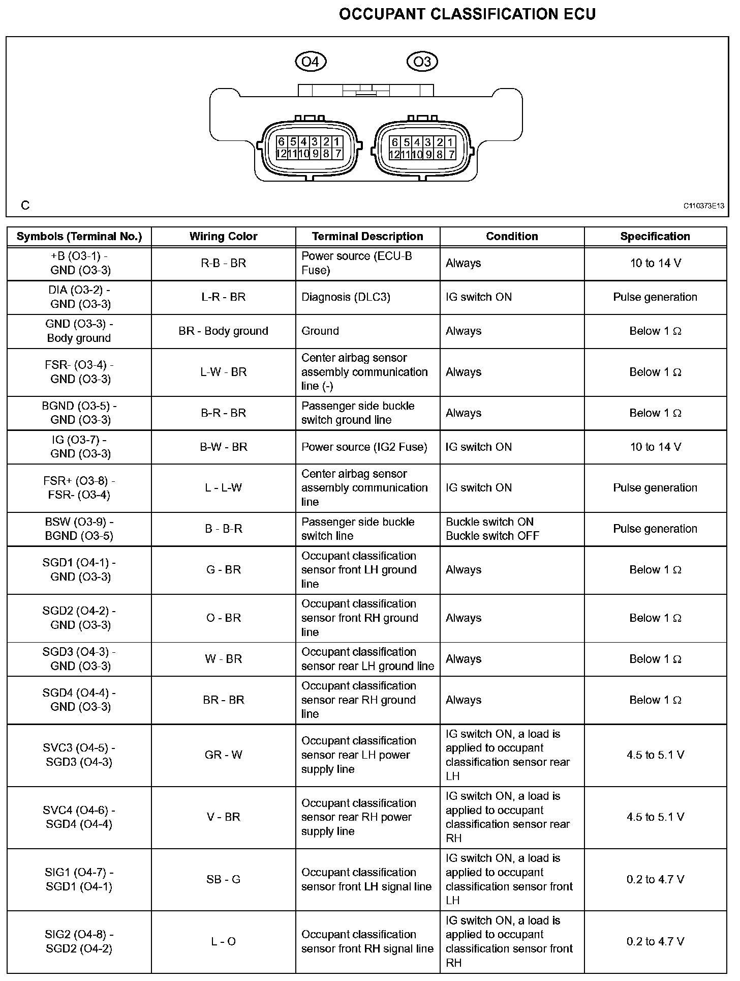 Pinout Values and Diagnostic Parameters