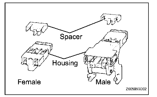 1. Terminal twin-lock mechanism: All connectors with a terminal twin-lock mechanism have a two-piece component consisting of a housing and a spacer. This design enables the terminal to be locked securely by two locking devices (the retainer and the lance) to prevent terminals from coming out.