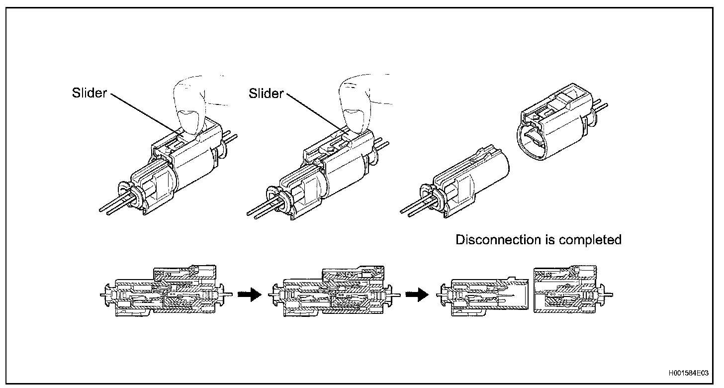 a. Connect the connector as shown in the illustration. (When locking, make sure that the slider returns to its original position and a click sound can be heard.)