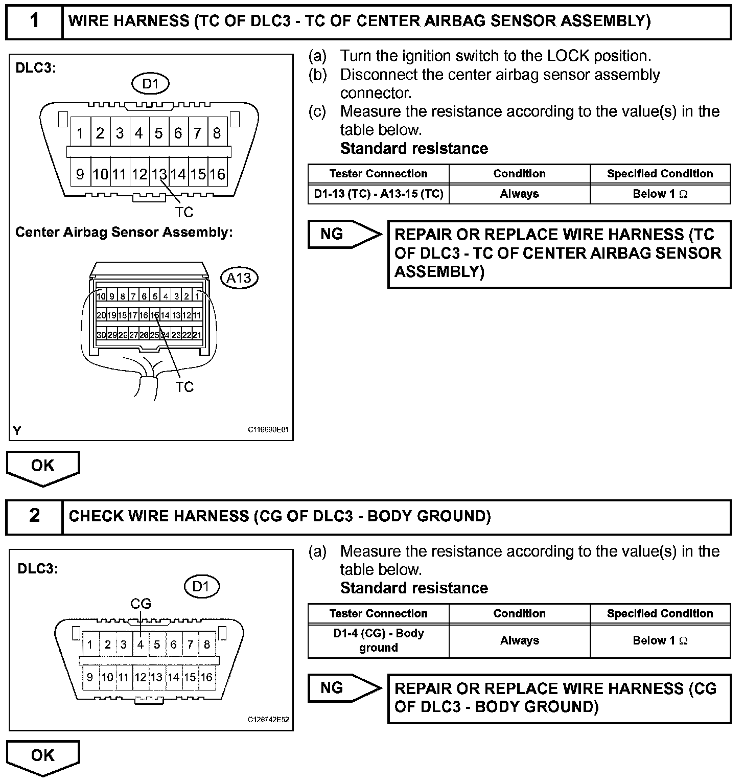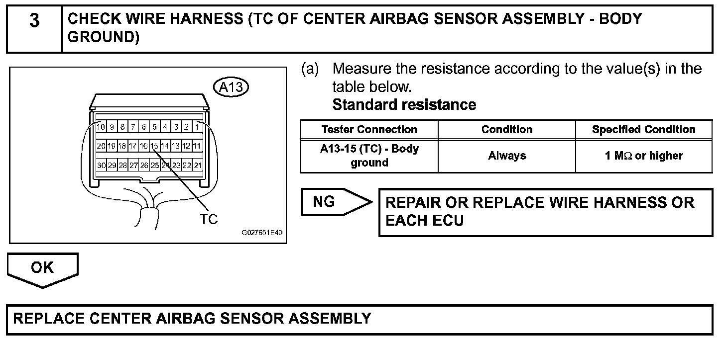 HINT: When each warning light keeps blinking, a ground short in the wiring of terminal TC of the DLC3 or an internal ground short in each ECU is suspected.