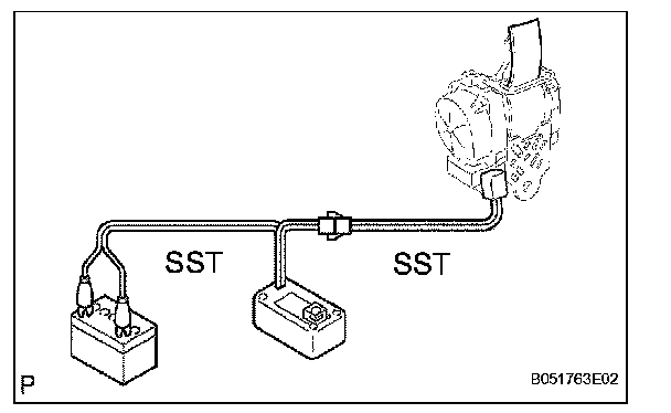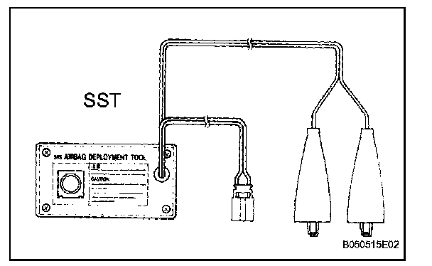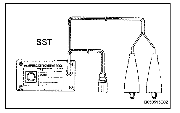 - When deploying the seat belt pretensioner, always use the specified SST (SRS airbag deployment tool). Perform the operation in a place away from electrical interference.