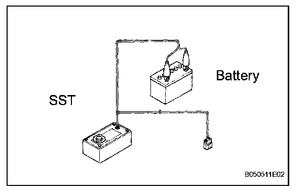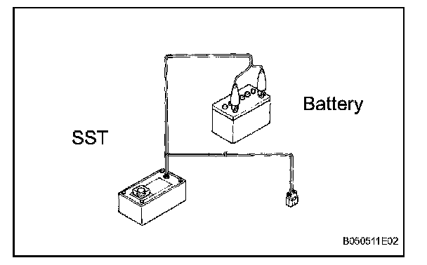 2. Connect the red clip of the SST to the battery positive (+) terminal and the black clip to the negative (-) terminal.