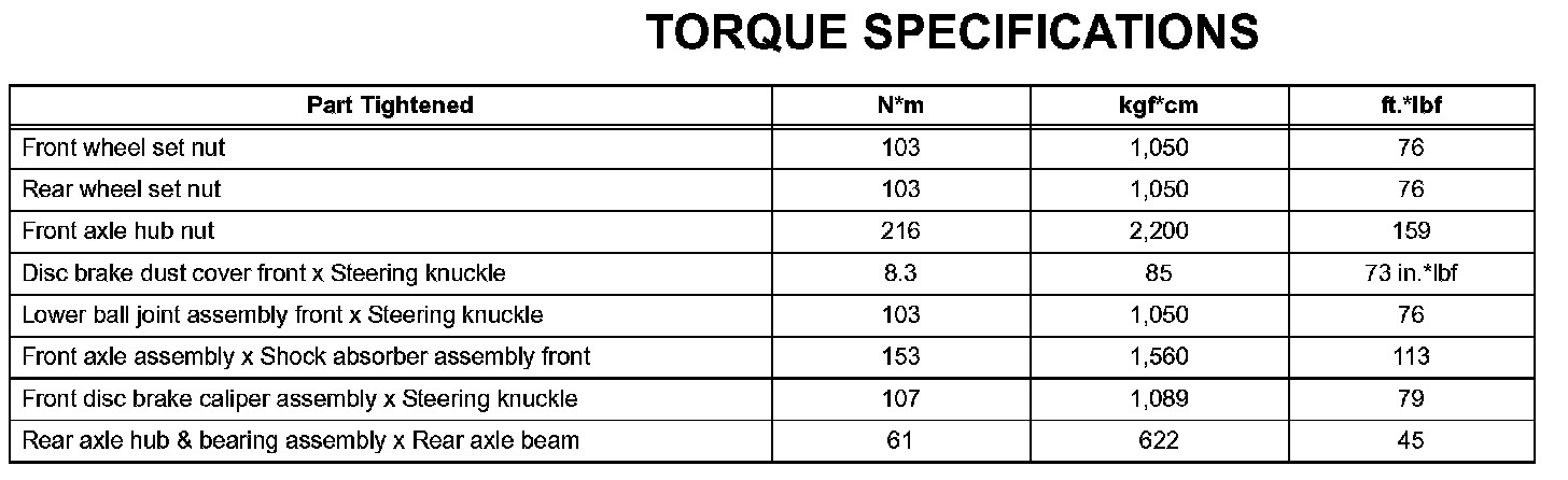 Axle - Torque Specifications: