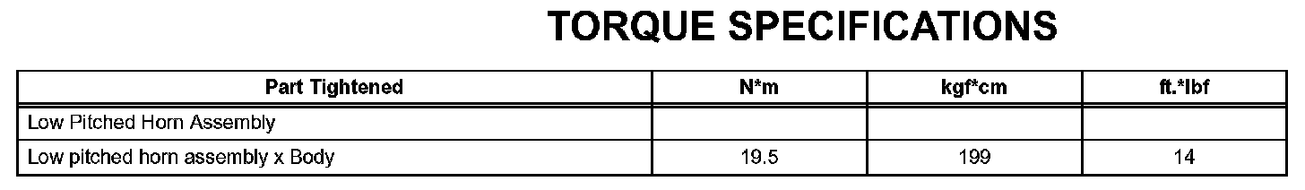 Horn - Torque Specifications: