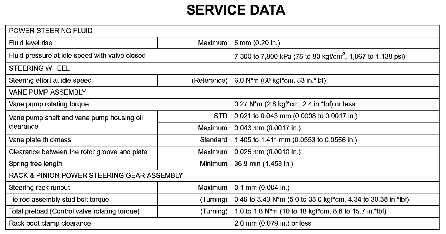 Power Steering - Service Data: